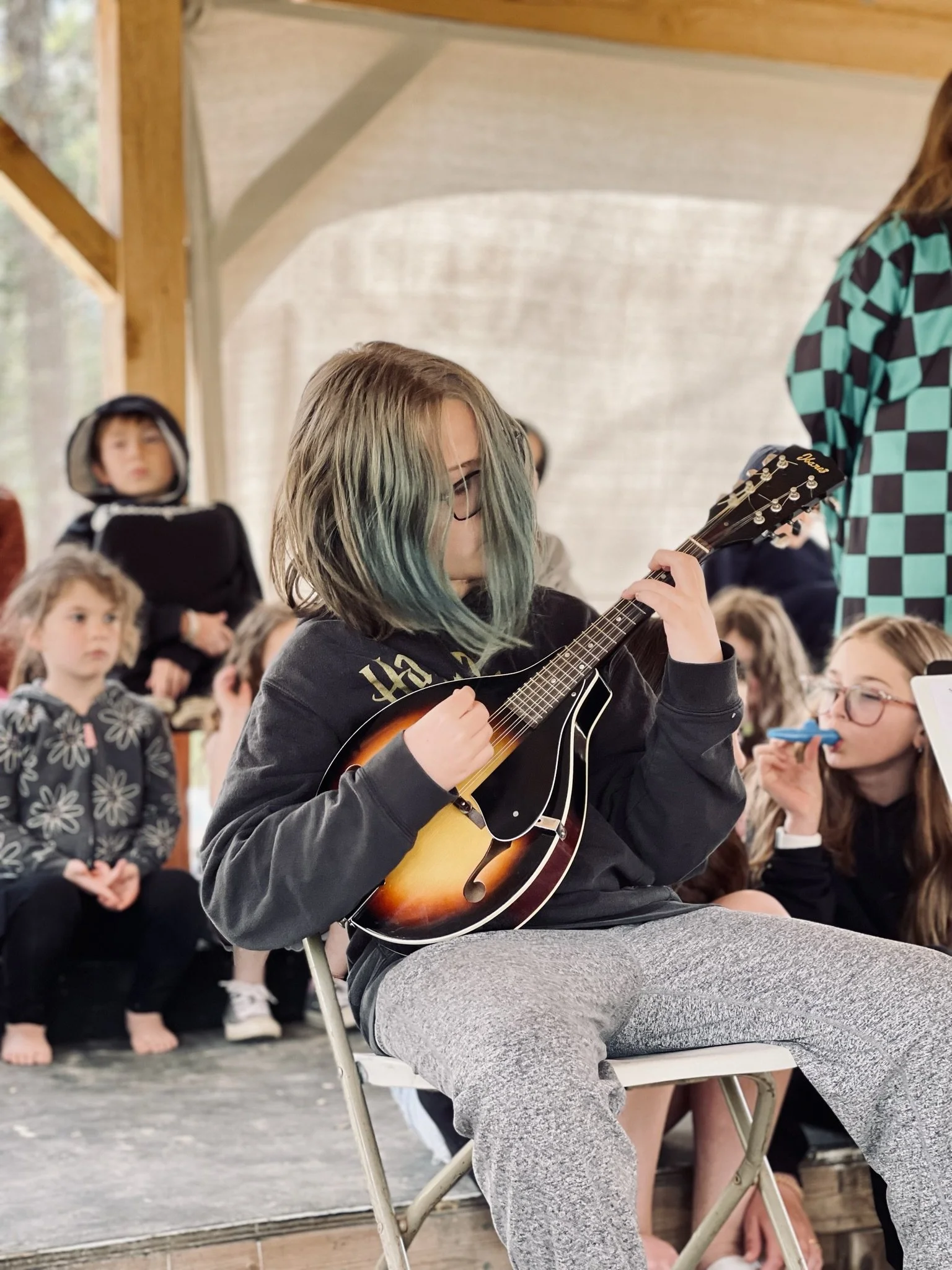 All spirals have regular music class each week. Our music teacher, Sharon, focuses on singing traditional and modern songs, introducing music history, playing instruments and learning to keep rhythm. She also incorporates student interest where she can! We also currently have two concert performances per year. Listen below to hear some of what our learners are doing in music class!